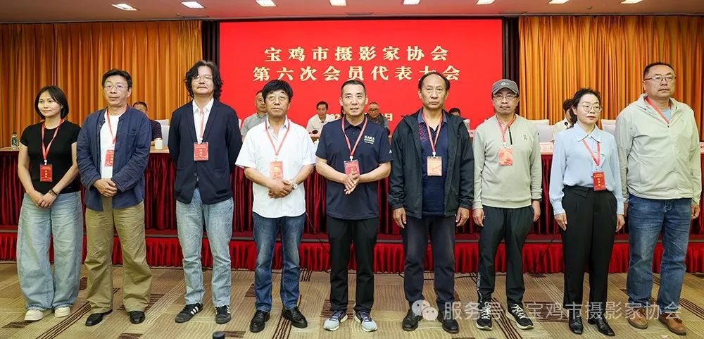 5月13日,宝鸡市摄影家协会第六次会员代表大会顺利召开,选举产生新一届理事会、主席团。 陕西省摄影家协会主席冯晓伟,秘书长杨洪波,副主席陈团结、张辉,副秘书长胡玉秋、苏俊;宝鸡市文联党组书记、主席王玉虹,党组成员、秘书长许妍,四级调研员何帆;宝鸡市民政局社会组织管理科刘涛等领导嘉宾参加会议。